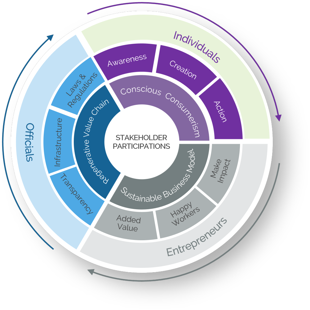 Our society consists of three primary stakeholders: Individuals, Entrepreneurs, and (government) Officials. Each has unique goals and methods, but they don’t operate in isolation. These stakeholders influence one another, and true progress requires their collaboration. To achieve meaningful change, we must align our efforts, look beyond our individual interests, and combine our strengths. The urgency to act is shared, and the potential impact is multiplied when we work together.